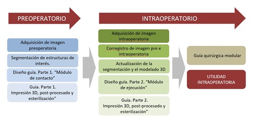 Figura 3: Flujo de trabajo del diseño y fabricación de una guía quirúrgica modular