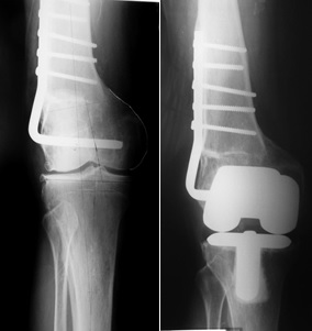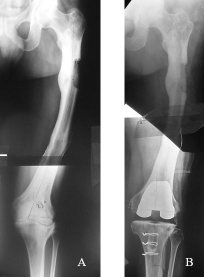 - Lonner JH, Siliski JM, Lotke PA. Simultaneous femoral osteotomy and total knee arthroplasty for osteoarthritis associated with severe extra-articula deformity. J Bone Joint Surg (Am). 2000; 82-A:342-8.