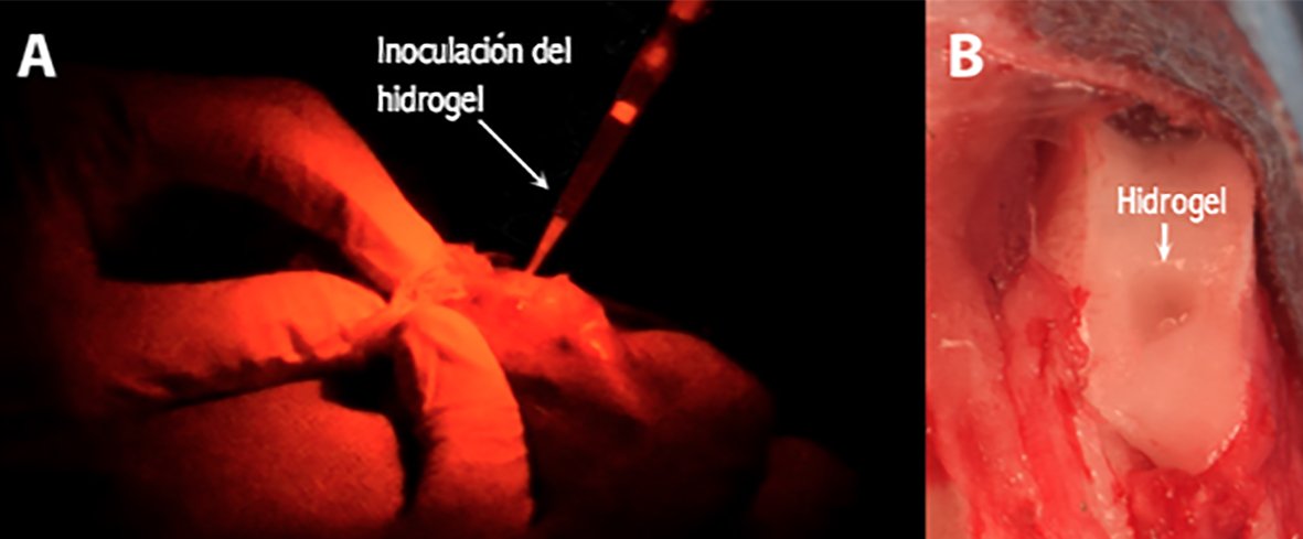 Agradecemos el aporte teórico y técnico de los siguientes autores para la realización de este artículo: Stephanie J. Bryant, PhD; Aisenbrey A. Elizabeth; Payne A. Karin, PhD (Department of Orthopedics, University of Colorado Anschutz Medical Campus, Aurora, CO, Estados Unidos); y Laurie R Goodrich, DVM, PhD (Department of Clinical Sciences and Orthopaedic Research Center, Colorado State University, Fort Collins, CO, Estados Unidos); con quienes trabajamos en conjunto con el hidrogel de condroitín sulfato y polietilenglicol an distitintos estudios animales que estamos desarrollando. El mismo hidrogel desarrollado y extensamente estudiado por SJB y AAE (Department of Chemical & Biological Engineering, University of Colorado Denver, Boulder, CO, Estados Unidos).