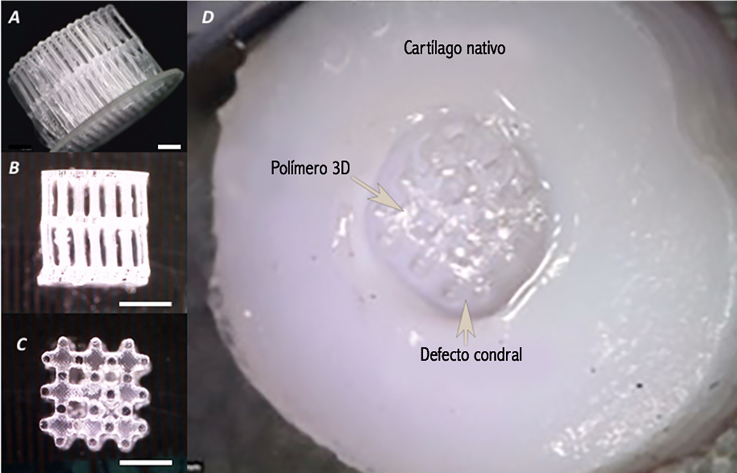 Las lesiones condrales focales y la artrosis afectan a un significante cantidad de pacientes activos. Los tratamientos quirúrgicos disponibles mejoran la calidad de vida de la mayoría a mediano plazo; sin embargo, la progresión hacia la artrosis prematura se encuentra latente. Un llamado a tratamientos biológicos con capacidad de restaurar la lesión es crucial. La bioingeniería constituye un área para la regeneración de cartílago que potencialmente podría progresar en el terreno de tratamientos articulares, promoviendo regeneración y evitando degeneración. Las células madre e hidrogeles pueden proveer un tejido biológico funcional equivalente de comportamiento dinámico que induce regeneración y reemplaza el tejido dañado. El abordaje consiste en colocar un hidrogel precursor o un biomaterial tri-dimensional impreso dentro del defecto para inducir regeneración. Esta revisión se focaliza en el uso actual y a futuro de hidrogeles y bioimpresión tri-dimensional para la regeneración de cartílago articular en el tratamiento de lesiones condrales focales.
