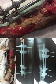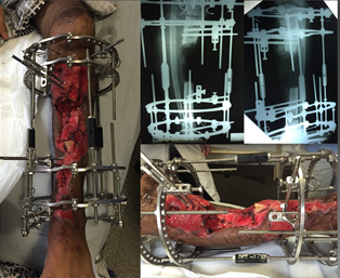 : Fijador externo circular, transporte óseo, cirugía de salvamento, accidente de tráfico, infección