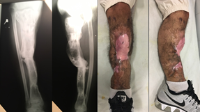Se expone un caso de un paciente con un traumatismo de alta energía en el miembro inferior izquierdo tras accidente de tráfico, con una pérdida ósea, en la tibia, inicial de 8 cm, contaminada, con pérdida de tejido muscular y falta de cobertura de las partes blandas, grave lesión vásculo - nerviosa no tratada de largo plazo. La indicación orienta hacia una cirugía de salvamento o amputación. Fue tratado según cirugía de salvamento, obteniendo como resultado final una extremidad funcional, que soporta carga, con sensibilidad conservada, flujo sanguíneo suficiente, con deambulación sin asistencia y marcha plantígrada e indolora. El procedimiento se basó en el tratamiento y estabilización de la fractura, sumado a la técnica de transporte óseo, durante 14 meses.